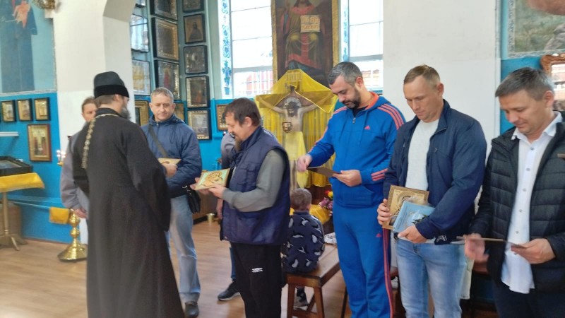 По благословению благочинного прихода Нижнедонского округа протоиерея Сергия Яценко, мужчинам, которые пришли в этот праздничный день в храм помолиться, в том, числе многодетным папам приходского молодежного семейного клуба "Верность", сестрами милосердия Марфо - Мариинского Сестричества были подарены иконы на молитвенную память.
