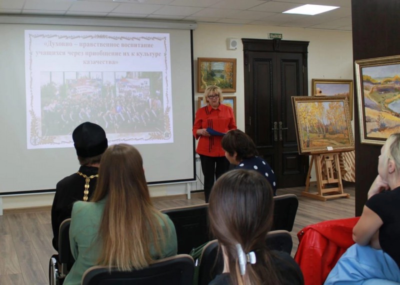 Заседаниеучителей провела Опрышко Людмила Григорьевна, заведующий МАУ «Информационно-методический кабинет». Презентации опыта работы по использованию казачьей культуры как основы воспитания детей и молодежи в духе православных традиций представили преподаватели школ, имеющих статус «Казачья»: Шеховцова Наталья Васильевна, учитель МБОУ СОШ № 62 сл. Красюковской, Безинкина Инна Аркадьевна, учитель МБОУ ООШ № 75 п. Кадамовского, Соловьева Любовь Владимировна, учитель МБОУ ООШ № 19 п. нтернациональный.