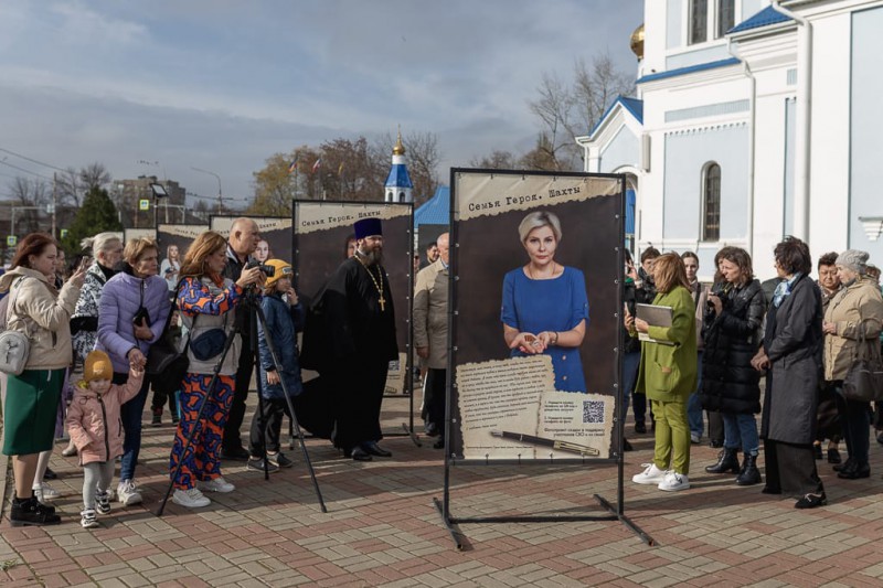 4 ноября, в праздник Казанской иконы Божией Матери и День народного единства на подворье Покровского кафедрального собора города Шахты открылась выставка фотовыставка «Семья Героя», посвященная семьям защитников Отечества, участников Специальной военной операции.