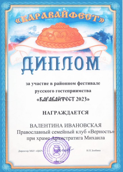 По благословению благочинного приходов Нижнедонского округа протоиерея Сергия Яценко молодежный актив семейного клуба «Верность» храма Архистратига Михаила п. Каменоломни принял участие в районном II Фестивале русского гостеприимства "Каравайфест".