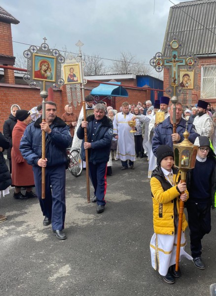 Духовенство и прихожане, воодушевленные молитвой, прошли с хоругвями и иконами, прославляя небесного покровителя храма Архистратига Михаила.
