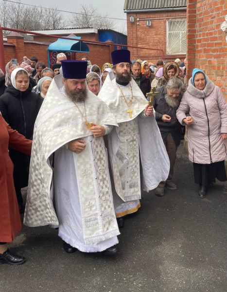 Соборную молитву совершили настоятель храма, благочинный приходов Нижнедонского округа протоиерей Сергий Яценко, настоятель храма святителя Тихона Задонского станицы Кривянская протоиерей Константин Федосеев, настоятель храма в честь иконы Божией Матери Одигитрия пос. Таловый иерей Андрей Ковалев, клирики Покровского Кафедрального собора г. Шахты иерей Михаил Дубянский, диакон Трофим Осяк и диакон Вячеслав Иващенко.