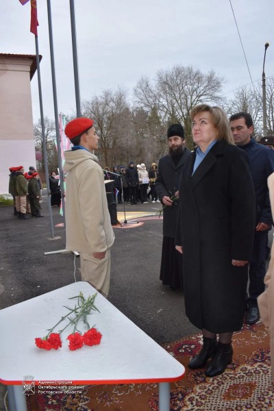 В торжественной церемонии посвящённой данному событию, приняли участие глава Администрации Октябрьского района Людмила Овчиева, глава Администрации Коммунарского поселения Ольга Безрукавая, благочинный приходов Нижнедонского округов протоиерей Сергий Яценко, председатель Совета ветеранов войны, труда (пенсионеров), вооруженных сил и правоохранительных органов Юрий Точеный, директор школы, учителя, ученики, участники СВО, председатель первичной организации ветеранов-участников специальной военной операции Вячеслав Черный.
