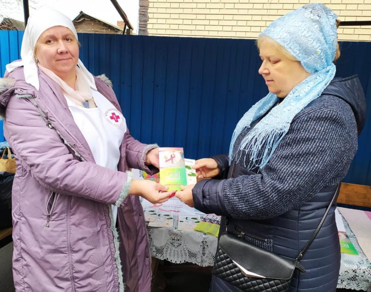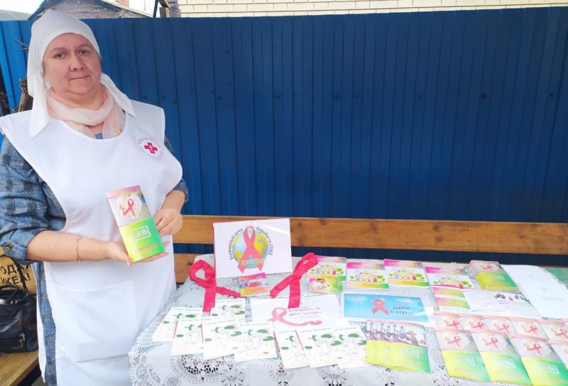 С целью реализации совместных проектов Нижнедонского благочиния с Муниципальным учреждением здравоохранения Центральной районной больницей, направленных на просветительскую работу среди жителей Октябрьского района по предотвращению серьезного инфекционного заболевания, синдрома приобретенного иммунодефицита – ВИЧ/СПИДа, во Всемирный день борьбы со СПИДом (World AIDS Day), при поддержке сестёр Марфо - Мариинского Сестричества и добровольцев благочиния местным жителям были розданы буклеты, способствующие повышению информированности и грамотности в сфере здоровья.