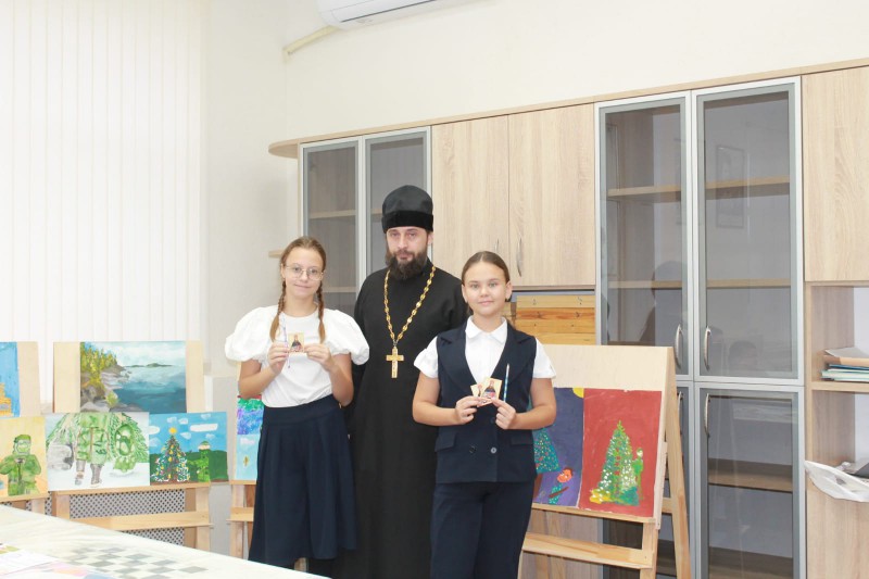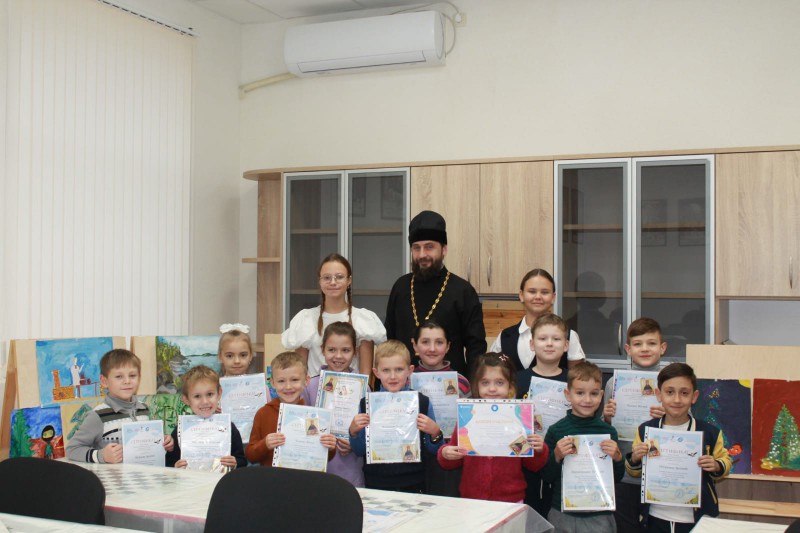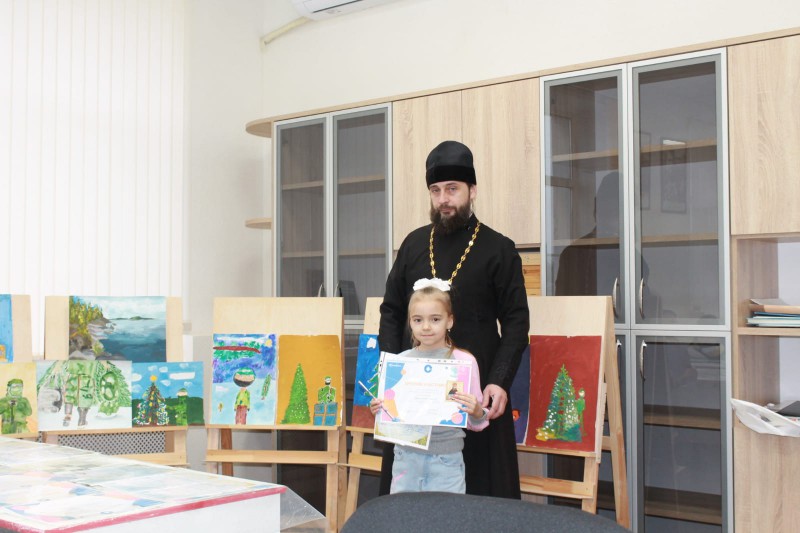 Протоиерей Сергий обратился к юным художникам со словами поздравления и вручил ребятам благодарственные грамоты, дипломы победителей и сертификаты участников.