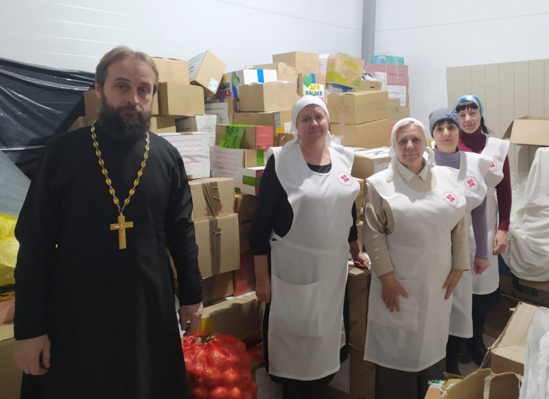 Определённая часть собранной помощи, передается на приходской гуманитарный склад, при храме Архистратига Михаила п. Каменоломни, где фасуется и формируется в единый груз, сестрами милосердия Марфо - Мариинского Сестричества, активом молодежного семейного клуба "Верность", казаками Нижнедонского Юрта и добровольцами.