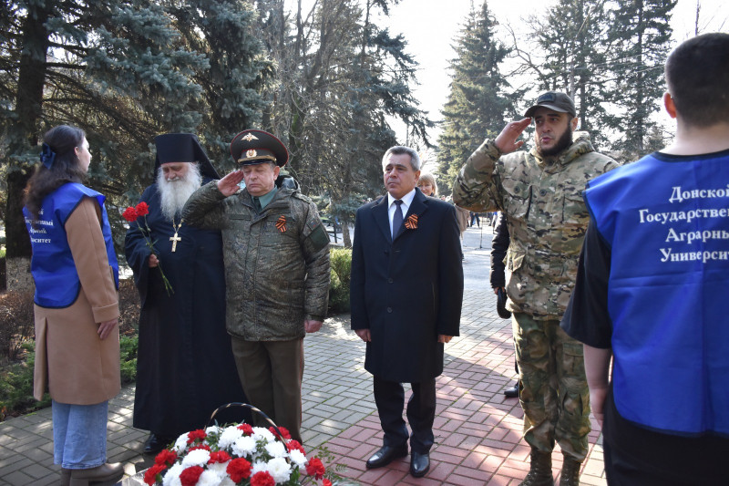 Открыл митинг ректор Донского ГАУ, профессор Владимир Федоров, который от имени коллектива вуза поздравил ветеранов и гостей праздника. Он отметил, что отказ от исторической правды, попытки переписать историю и предать забвению память миллионов привели к тому, что России вновь приходится защищать и спасать людей – на этот раз от современного нацизма.