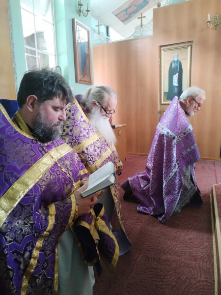 Божественную Литургию Преждеосвящённых Даров в день памяти преподобного Серафима Вырицкого, совершили благочинный приходов Нижнедонского округа протоиерей Сергий Яценко, настоятель храма святого благоверного великого князя Димитрия Донского п. Нижнедонской игумен Александр (Корнеев), настоятель храма святителя Алексия Московского ст.Бессергеневской протоиерей Андрей Поздняков , настоятель храма святой мученицы Татианы п.Персиановский иеромонах Николай (Наметышев), настоятель Одигитриевского храма ст. Заплавской протоиерей Андрей Супрунов, настоятель храма Святой Троицы х. Ягодинка протоиерей Николай Филимонов, настоятель Покровского храма ст.Кривянской иерей Александр Шапкин и клирик храма Архистратига Михаила п. Каменоломни иерей Максим Коваленко.