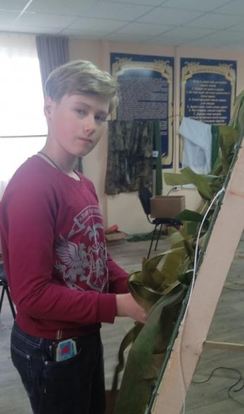 Обычно, добровольческая работа начинается с нарезки гирлянд и так называемых «паучков» — маскировочных элементов крепления сети. Затем гирлянды, ребята вплетают в сеть, образуя плотно маскировочные сети.