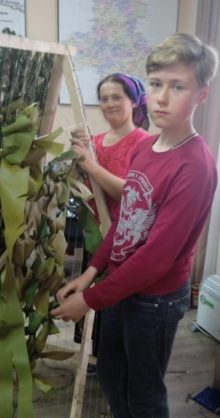 Все вместе делают большое доброе дело. В каждую ячейку маскировочной сети вплетается детскими руками доброта, забота и любовь для наших воинов.