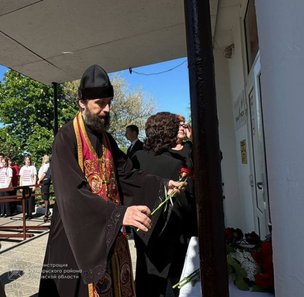 Благочинный приходов Нижнедонского округа протоиерей Сергий Яценко совершил освящение мемориальной доски и обратился к участникам с пастырским словом.