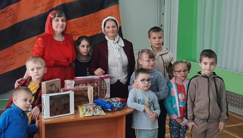 По приглашению руководства реабилитационного центра "Добродея" для детей и подростков с ограниченными возможностями здоровья г. Шахты, учащиеся церковно - приходской воскресной школы "Благовест" храма Архистратига Михаила п. Каменоломни посетили воспитанников учреждения и поздравили с Пасхой Господней, и Днем Победы.