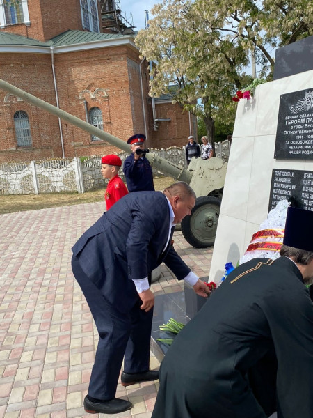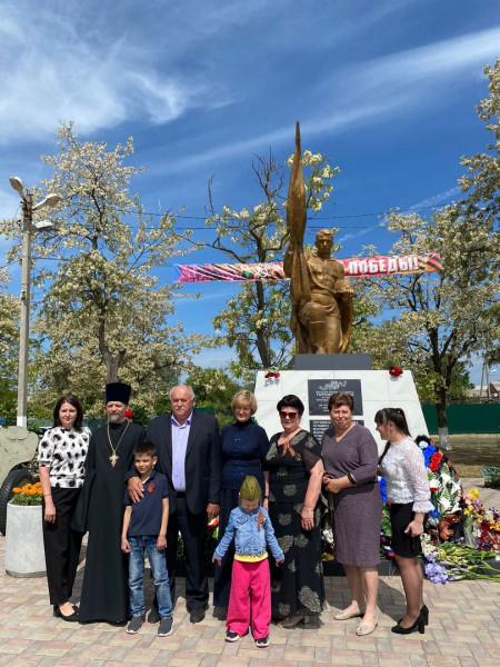 Настоятель храма святителя Алексия Московского протоиерей Андрей Поздняков, после совершения заупокойного Богослужения в храме, принял участие в мероприятии и обратился к местным жителям со словами поздравления.