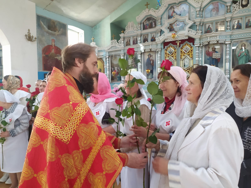 По окончании Божественной Литургии протоиерей Сергий обратился ко всем присутствующим с пастырским словом, в котором рассказал о подвиге святых жен-мироносиц и напомнил о благодати милосердного служения ближним.