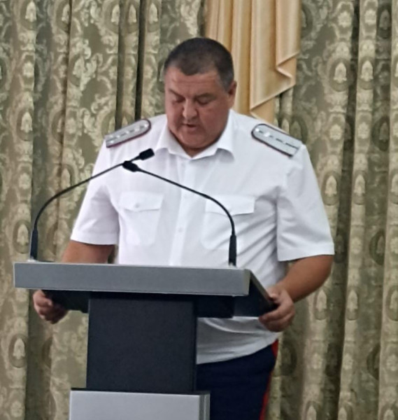 Далее юртовой атаман Анатолий Гудков отчитался об итогах своей деятельности за период с 2023 - 2024 гг.