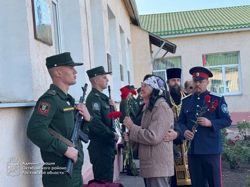 После освящения мемориальной доски, к матери погибшего солдата и к участникам мероприятия, с пастырским словом обратился благочинный приходов Нижнедонского округа протоиерей Сергий Яценко.