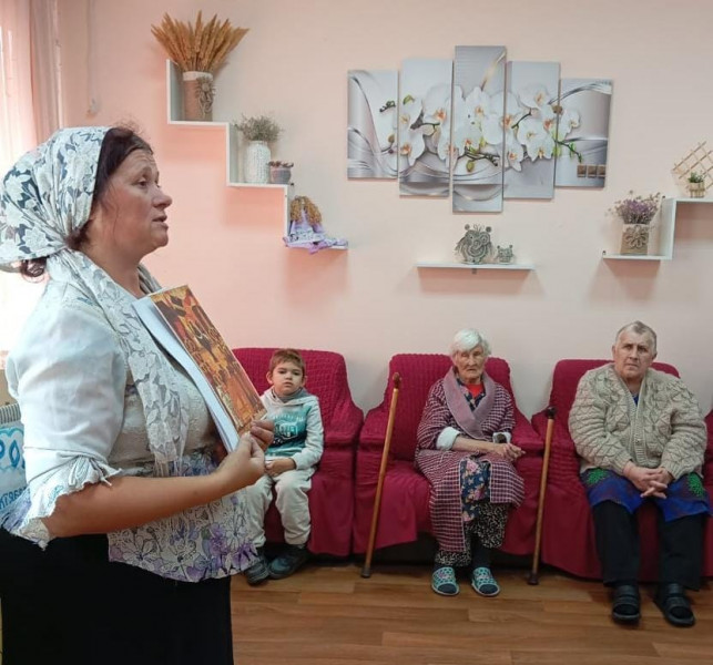 Со славами поздравления к пожилым и инвалидам обратился руководитель воскресной школы Ксения Бережная. Она рассказала о значении великого торжества для православных христиан и о традициях, связанных с этим праздником.