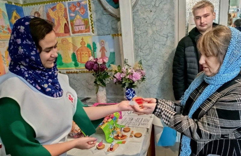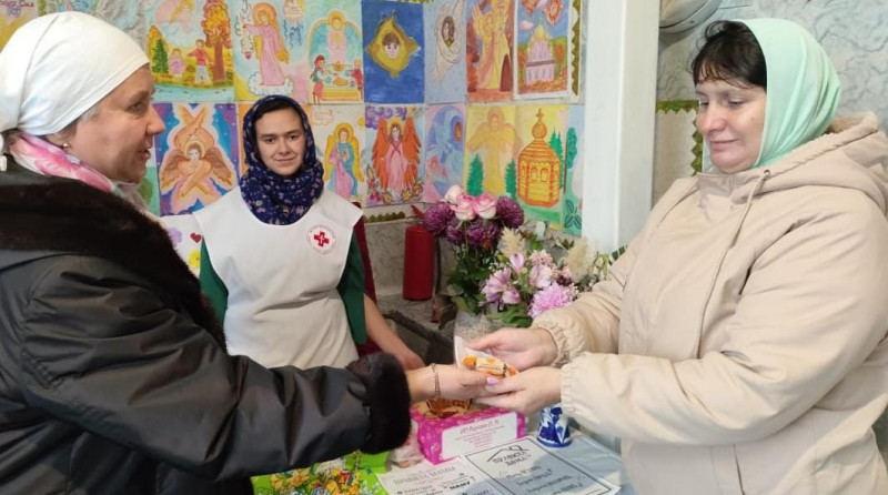 Сестры Марфо - Мариинского Сестричества организовали раздачу сладостей для детей в взрослых.