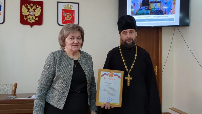 Глава Администрации района Людмила Овчиева поблагодарила благочинного приходов Нижнедонского округа протоиерея Сергия Яценко, сестёр милосердия и молодёжный актив семейного клуба за неравнодушное и деятельное участие в жизни района и помощь военнослужащим.