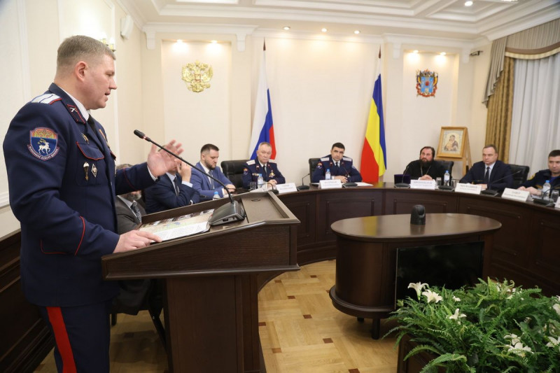 Заседание проходило в онлайн-формате и собрало в студиях правительства области и муниципальных образований членов совета, руководителей и представителей исполнительных органов власти, администраций муниципалитетов, атаманов и духовников казачьих обществ Войска, командиров казачьих дружин, руководителей отделений ГКУ «Казаки Дона» и казачьей детско-молодежной организации «Донцы», директоров казачьих кадетских учебных заведений.