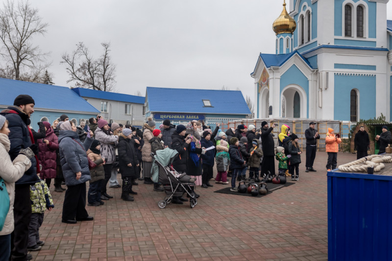 Активные участники праздника, на деле показали, что не перевелись на Руси богатыри, самые тяжелые гири до 70-ти килограмм смогли одолеть священнослужители Шахтинской епархии. Попробовали свою силу и все желающие, для которых было устроено соревнование в трех весовых категориях, начиная с самого младшего возраста.