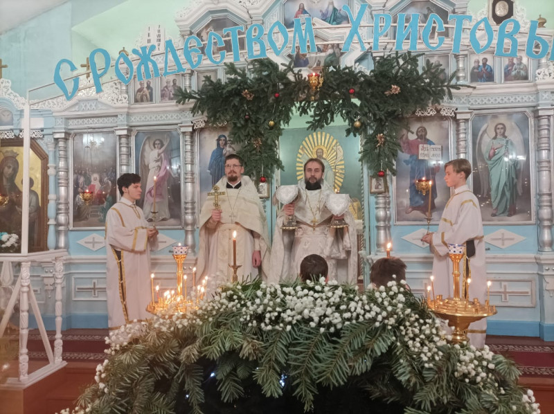 По запричастном стихе были прочитаны Рождественские послания Святейшего Патриарха Московского и всея Руси Кирилла и Правящего Архиерея, епископа Шахтинского и Миллеровского Симона.