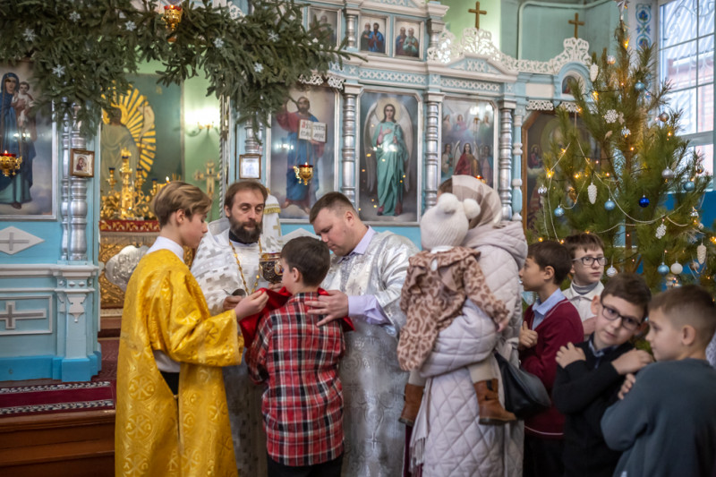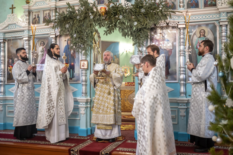 За богослужением читалось Евангелие от Матфея, повествующее о крещении Господа Иисуса Христа.