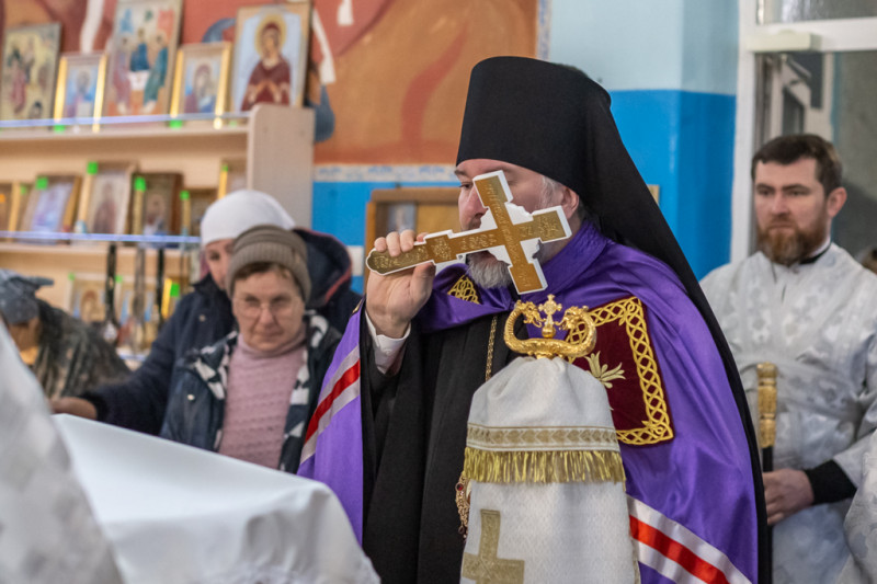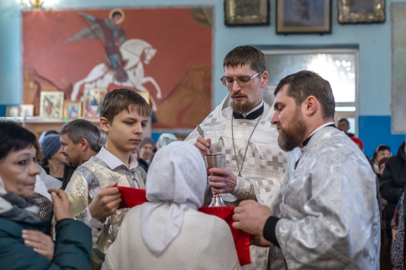 В этот день в храме Архистратига Михаила поселка Каменоломни архипастырю сослужили настоятель прихода протоиерей Сергий Яценко, иерей Михаил Дубянский, иерей Максим Коваленко и диакон Трофим Осяк.
