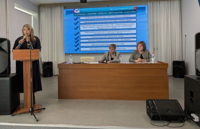 Глава Администрации Октябрьского района Людмила Овчиева в своем выступлении перед педагогами района подчеркнула ключевую роль образования для будущего страны. Она отметила, что именно педагоги формируют будущее, а задача администрации — создать оптимальные условия для образовательного процесса.