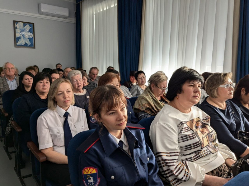 Отчетное собрание об итогах работы за 2024 год отдела образования Октябрьского района, прошло в актовом зале гимназии №20 им. С.С.Станчева поселка Каменоломни.