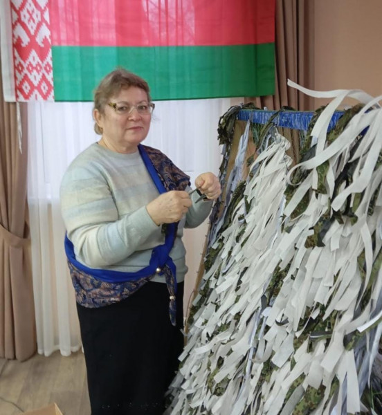 В Октябрьском районе неравнодушные люди объединили свои усилия и организовали волонтерские группы, плетущие маскировочные сети и шьющие защитные костюмы для бойцов, находящихся в зоне специальной военной операции.