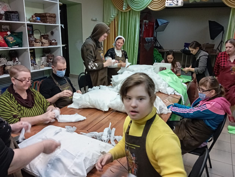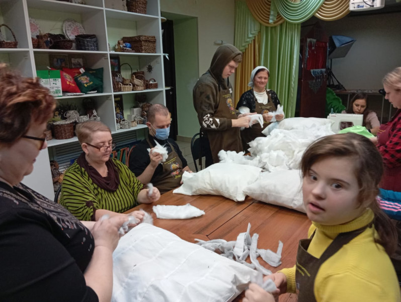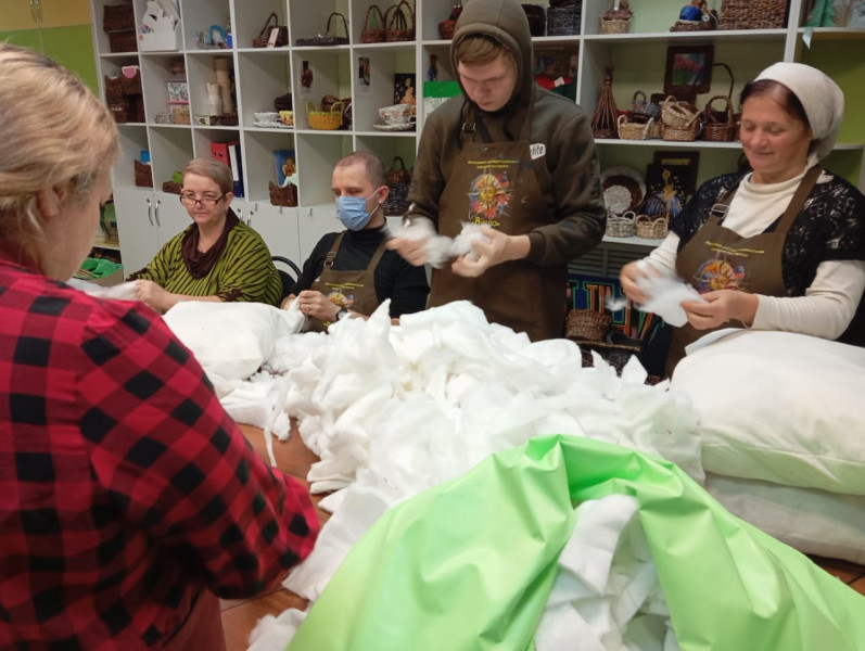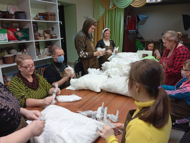 В преддверии Дня защитников Отечества ребята передали сестрам Марфо - Мариинского Сестричества храма Архистратига Михаила п. Каменоломни очередную партию подушек с нетканым ватином.