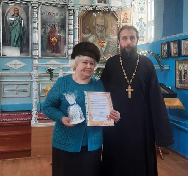Отец Сергий выразил писателю слова благодарности за её постоянный труд в деле духовно-нравственного и гражданско-патриотического воспитания детей и молодежи, вручил ей Благодарственное письмо и подарил памятный подарок.