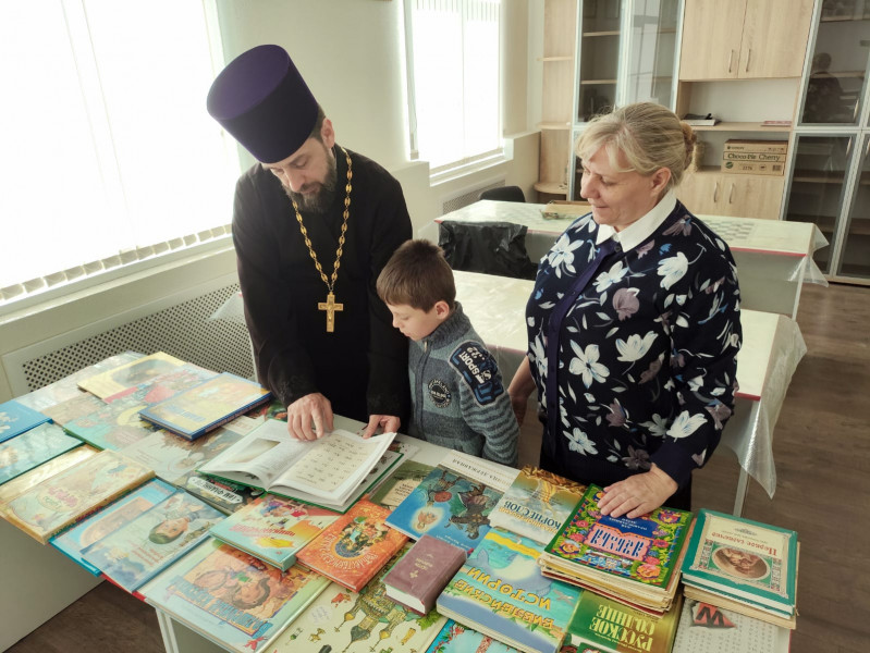 На выставке, к детям обратился благочинный приходов Нижнедонского округа протоиерей Сергий Яценко. Ребята узнали о первопечатнике Иване Федорове, о том, что 14 марта 1564 года его трудами и соратником Петром Мстиславцем вышла первая на Руси печатная книга – «Апостол».