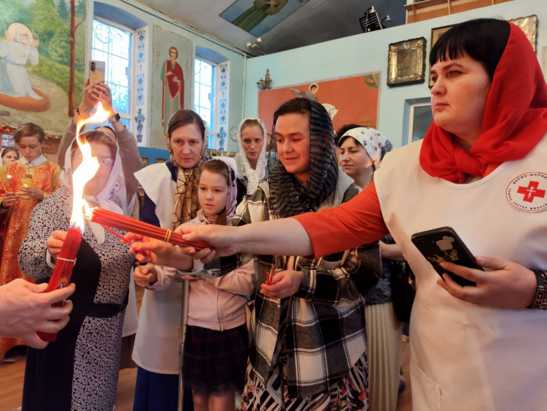 По традиции, в храме Архистратига Михаила п. Каменоломни, верующие торжественно встретили Благодатный огонь. После праздничного молебна все желающие смогли зажечь свои свечи и лампадки, чтобы отнести Святой огонь в свои дома, сохранив память о великом Божием чуде.