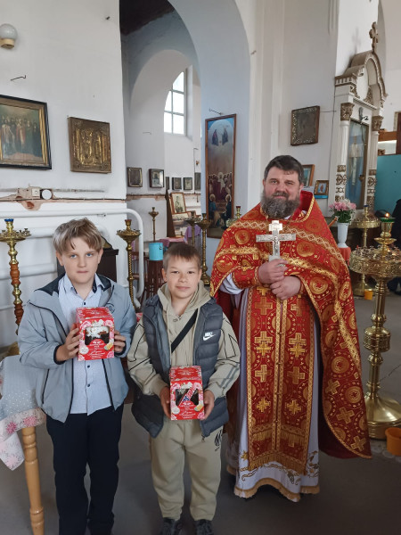 Воспитанники воскресной школы вместе молились на Божественной Литургии, причастились Святых Христовых Тайн и получили от священника сладости.
