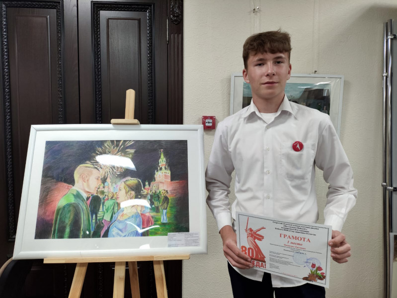 Художественная работа "С Днем Победы" Пащенко Евгения от молодежного семейного клуба "Верность" храма Архистратига Михаила п. Каменоломни заняла почётное первое место.