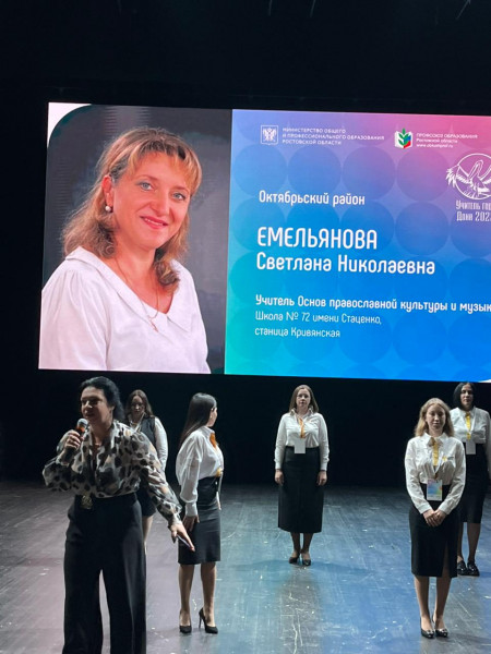 — Емельянову Светлану Николаевну, учителя ОПК и музыки МБОУ СОШ №72 имени В.Е. Cтаценко, Октябрьский район, Ростовская область;