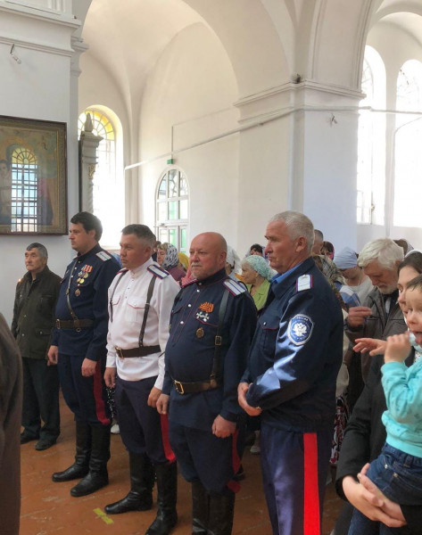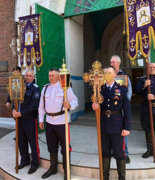 По окончании службы состоялся традиционный Крестный ход. Настоятель прихода обратился к молящимся с пастырским словом и поздравил станичников и гостей с престольным праздником.