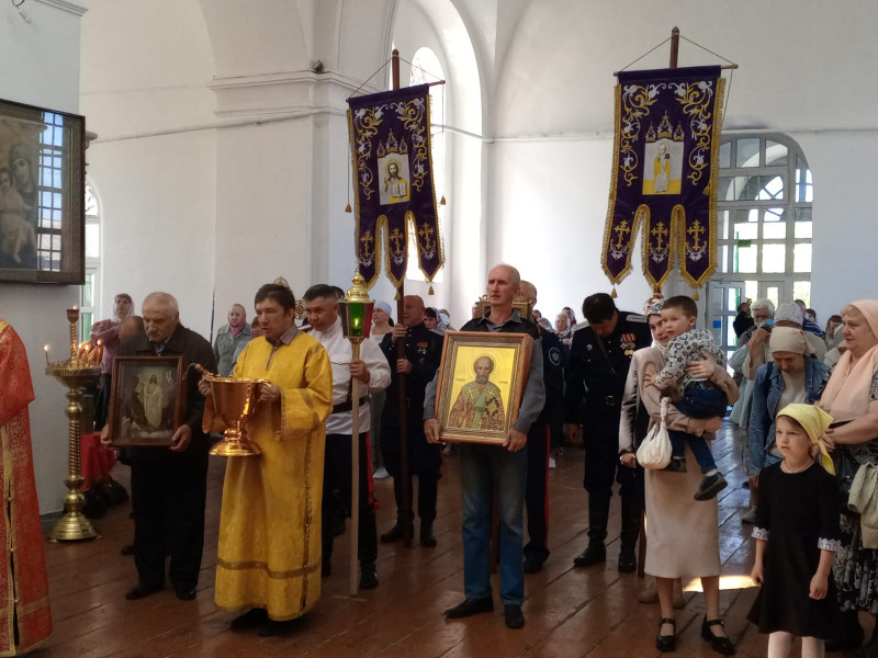 По окончании службы состоялся традиционный Крестный ход. Настоятель прихода обратился к молящимся с пастырским словом и поздравил станичников и гостей с престольным праздником.