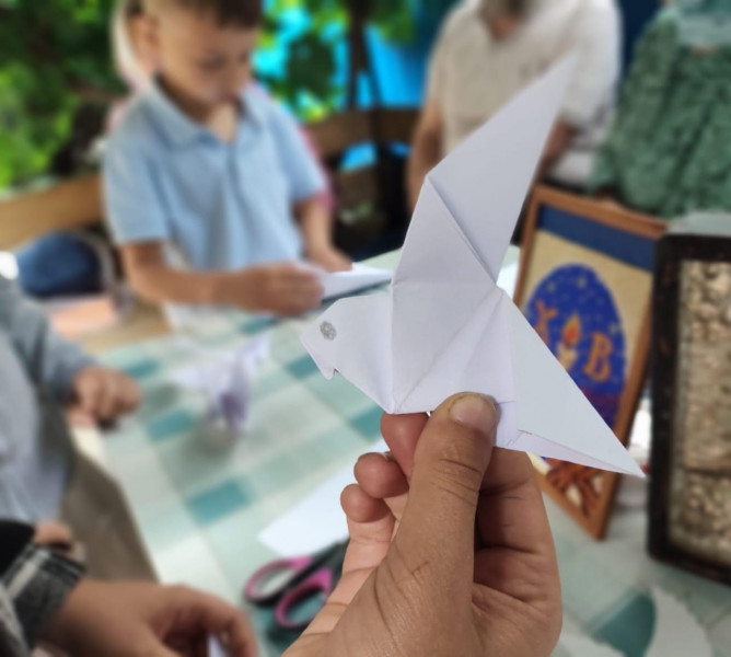 Участники акции сложили методом оригами голубей, а также вырезали бумажных голубей, познакомили детей и подростков с памятной датой начала Великой Отечественной войны 1941-1945 годов и рассказали о помощи Божией в период войны.