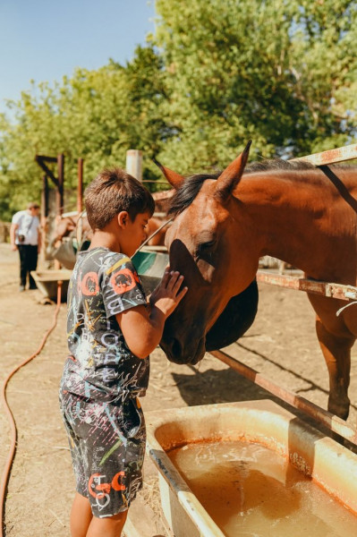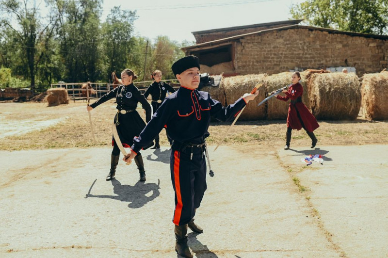 Гостям показали конюшню, рассказали о лошадях, показали как их седлать, познакомили с образцами оружия. Коллектив из г. Шахты представил выступление, в котором показал умение фланкировки саблями. Подопечные покатались на лошадях и покормили их, сделали фотографии. Казаки накормили всех приготовленным на костре казачьим блюдом – шулюмом и рассказали про станицу. Затем гости посетили местную школу, где ребятам провели экскурсию, посетили школьный музей.