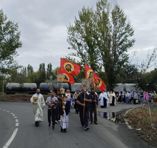 Духовенство Нижнедонского благочиния с прихожанами храмов Октябрьского района, традиционно, в день памяти одного из самых известных чудес Архангела Михаила бывшего в Хонех, чтобы почтить его и вспомнить историю о силе молитвы и Божьей помощи, совершили торжественное шествие к Часовне Архангела Михаила п. Каменоломни.
