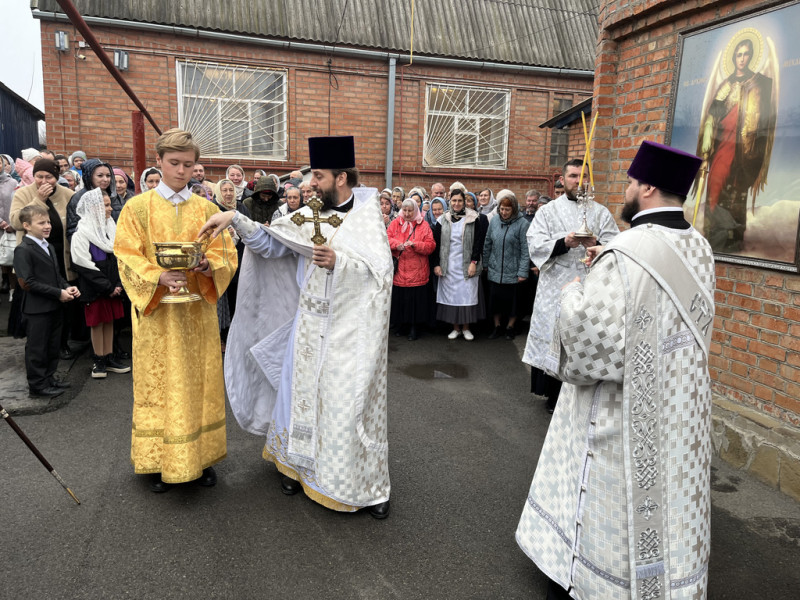 По завершении Литургии духовенство и прихожане во главе с архипастырем совершили крестный ход, прославляя небесного покровителя храма Архистратига Божия Михаила.