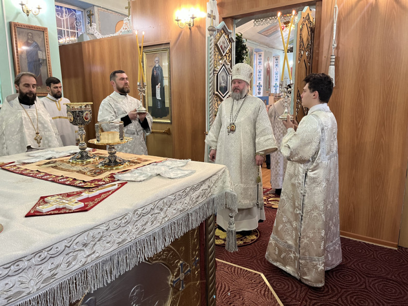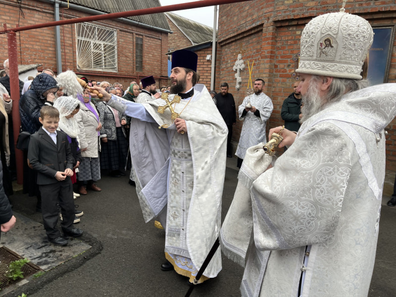 Его Преосвященству сослужили благочинный приходов Нижнедонского церковного округа, настоятель храма протоиерей Сергий Яценко; клирик храма Архистратига Михаила иерей Максим Коваленко и диакон Трофим Осяк.