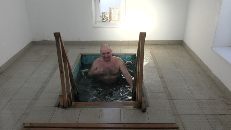 Все желающие жители Октябрьского района и гости, с молитвой совершили традиционное троекратное погружение в освящённую воду для телесного укрепления.