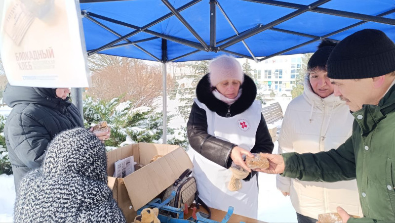 В посёлке Каменоломни Октябрьского района на площади имени 50-летия Победы состоялась традиционная патриотическая акция памяти «Блокадный хлеб», приуроченная к 82-й годовщине полного освобождения Ленинграда от фашистской блокады.
