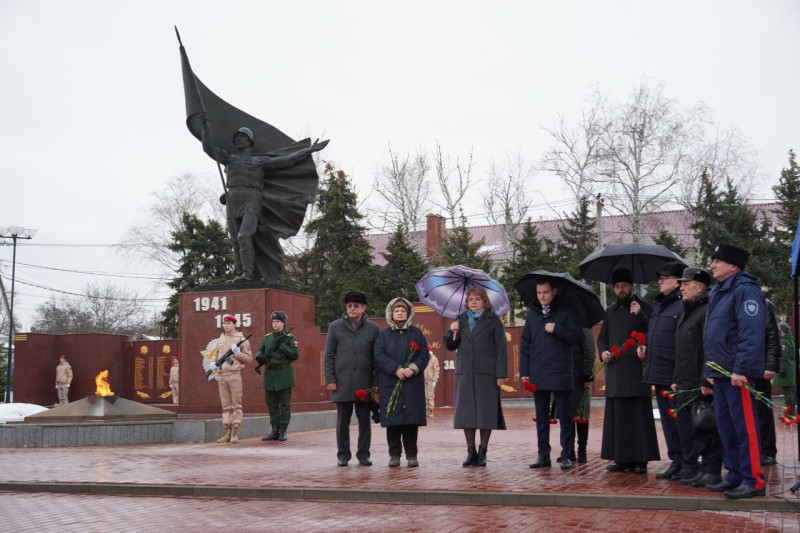 В церемонии возложения цветов и венков приняли участие: временно исполняющий обязанности главы администрации Октябрьского района Татьяна Юшковская, заместитель председателя Собрания депутатов Наталья Злобина, депутат Законодательного Собрания Ростовской области Аркадий Горцевской, благочинный приходов Нижнедонского округа протоиерей Сергий Яценко, председатель Совета ветеранов Юрий Точеный, руководитель первичной организации ветеранов-участников СВО Вячеслав Точеный, а также представитель Союза ветеранов Афганистана Николай Королев.