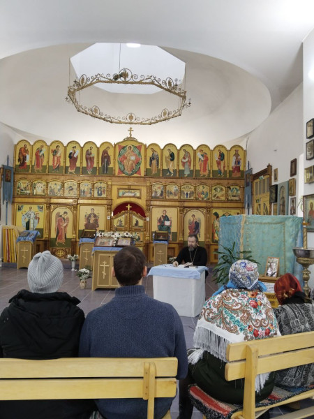 В храме Успения Пресвятой Богородицы хутора Алексеевка встречи проводит настоятель прихода иеромонах Олег (Васильченко).