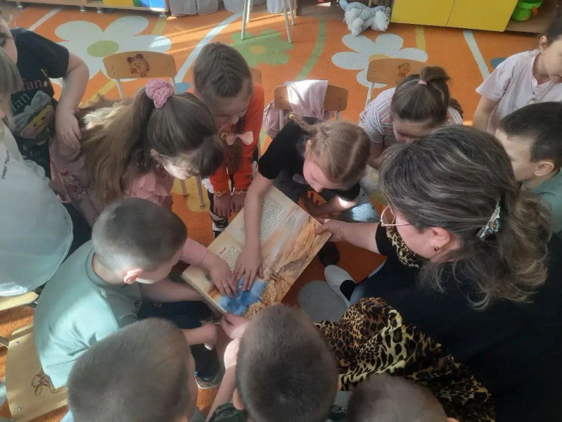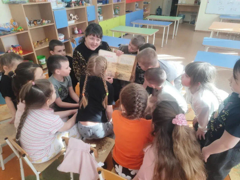 Встреча с воспитанниками детского сада была посвящена истории книгопечатания и духовной литературе. Светлана Емельянова познакомила юных слушателей с Детской Библией, рассказав, что в древности книги были рукописными и создавались из пергамента и бересты.